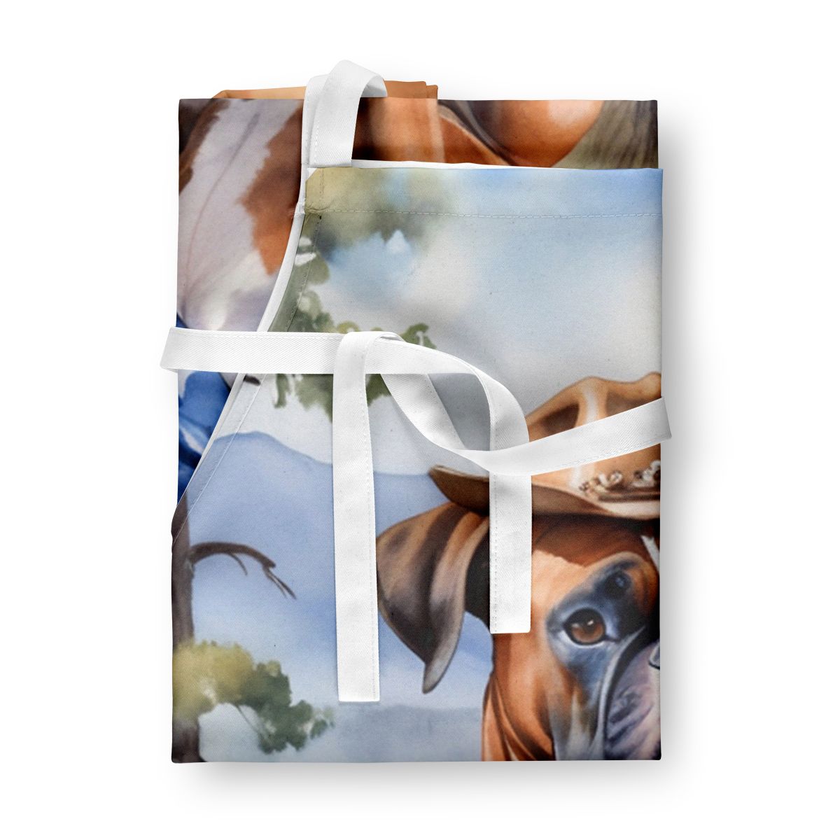Apron featuring breed specific Boxer artwork. Elevate your cooking, baking, and grilling experiences with our versatile Kitchen or BBQ Apron. This Bib Style apron isn't just limited to culinary activities - it also serves as an excellent baking apron, artist apron, server apron, gardening apron, or even a dog grooming apron. The apron showcases vibrant full-color artwork contributed by one of our talented artists, bringing a dash of style to your daily tasks. With dimensions of approximately 27"W x 30"H, it provides ample coverage to protect your clothing from spills and splashes. Our apron is meticulously crafted from 100% Ultra Spun Polyester, known for its durability and lightweight nature. The apron comes with white tie straps, ensuring a comfortable and adjustable fit for all. It's a perfect choice for kitchen apron enthusiasts, whether you are a woman or a man. Designed for easy maintenance, this apron is fully machine washable. The quick-drying polyester material actively reduces staining, keeping your apron looking fresh and new for longer. Our beautifully designed apron isn't just a functional kitchen accessory - it's a fashion statement in the culinary world!