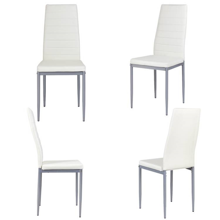 • Set of 4 Modern High Back White PVC Leather Dining Chairs with Metal Legs