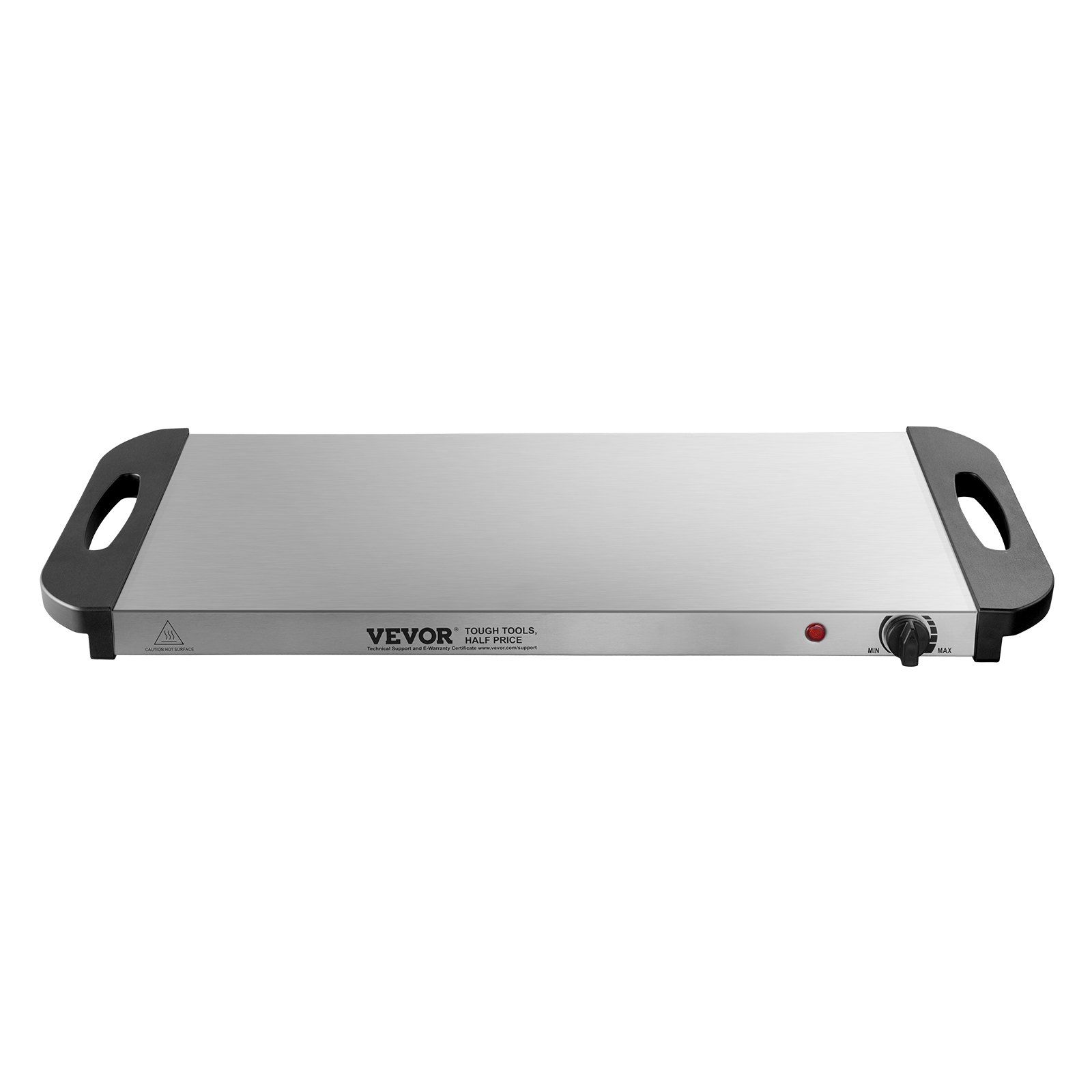 Our electric warming tray is made with a stainless steel metal panel, it's highly durable, heat-resistant, and won't easily crack over time.