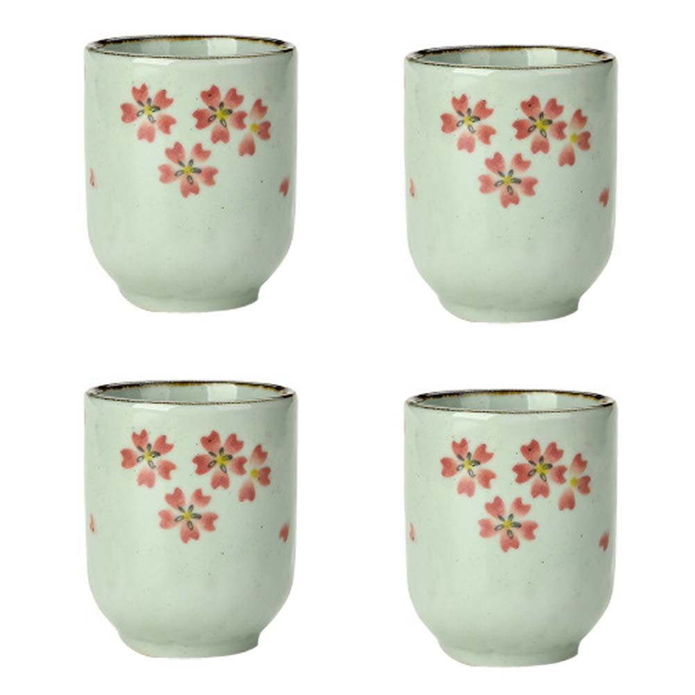 4Pcs Japanese Style Pink Cherry Blossom Ceramic Teacups Small Straight Wine Cups 150ML 4Pcs Japanese Style Pink Cherry Blossom Ceramic Teacups Small Straight Wine Cups 150ML