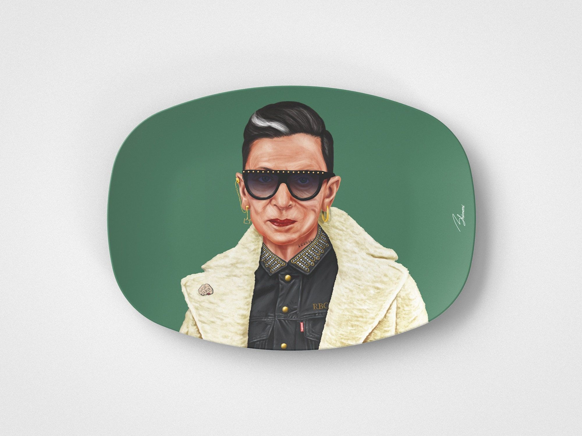 "Fight for the things that you care about. But do it in a way that will lead others to join you."Ruth Bader GinsburgThis unique 10"x14" DecoWare® platter offers an avant-garde tribute to Ruth Bader Ginsburg, depicting the legal luminary in a modernized fashion that mirrors her trailblazing impact on the law. An inspiring piece ideal for those who look up to the heroes of history. P R O D U C T D E T A I L S // 10"x14" Oval Serving Platter, 0.75" Tall// Microwave safe// Oven-safe up to 250 degrees Fahrenheit for 1 hour// Dishwasher-safe// Molded from DecoWare® - a high performance medical-grade polymer// Safe for food contact// Contains no melamine, BPA's, formaldehyde or other harmful chemicals// Recyclable// 100% Made in the U.S.A.// Durable satin finish// Unbreakable with normal use  F I N E P R I N T Due to the many variations in monitors, the actual colors on each plate and platter may appear slightly different than the colors that appear on your monitor. They are awesome in real life!Each unique Platter is made to order. R E T U R N S & R E F U N D S Returns and exchanges are accepted within 14 days of delivery. If there are any problems with your order, please feel free to message me and I will help any way possible. W E L O V E O U R C U S T O M E R S Thank you so much for browsing our listings, don't hesitate to message with any questions or concerns. We strive to please you!