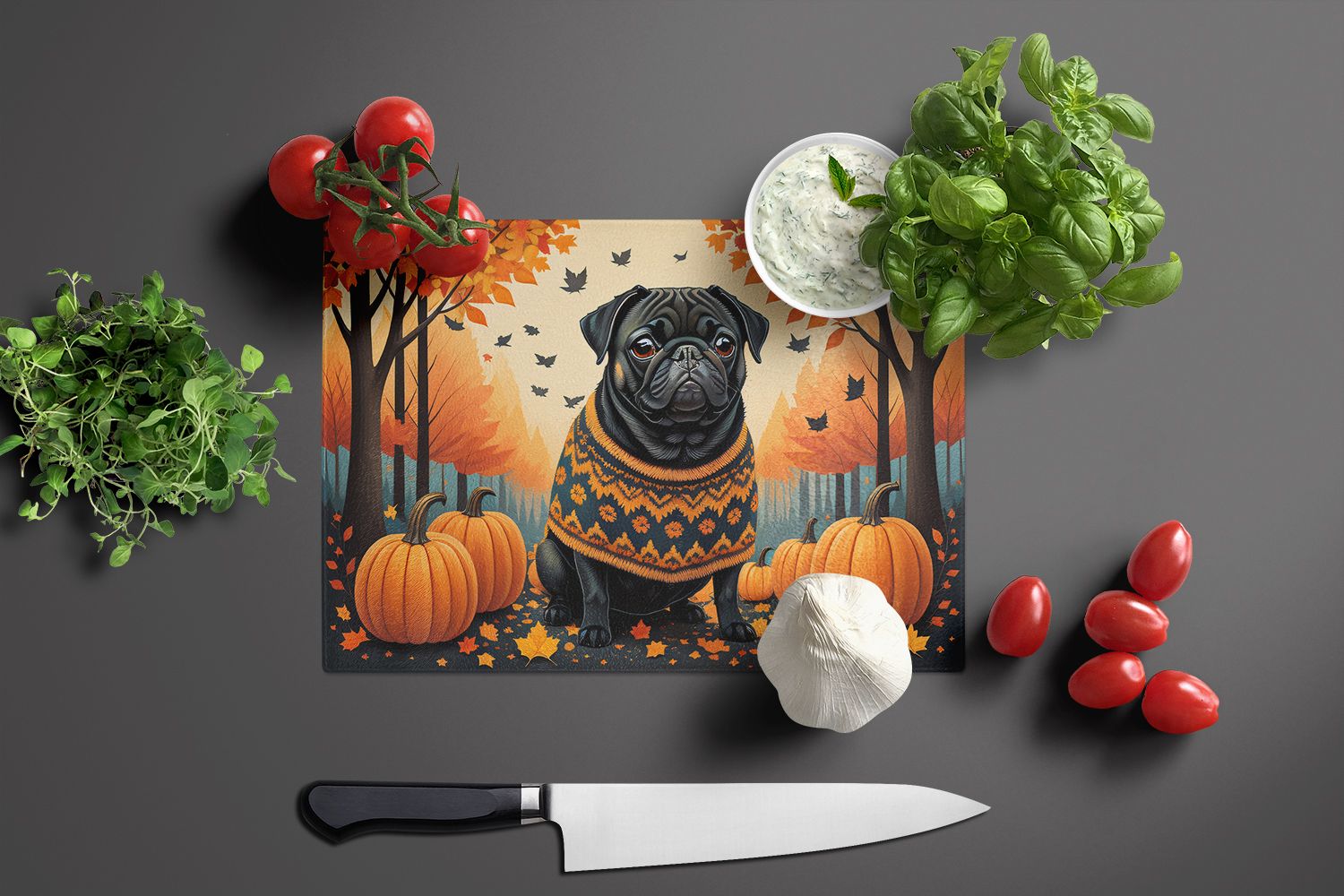 Home > NEW Black Pug Fall Glass Cutting Board Decorative Tempered Glass Kitchen Cutting and Serving Board Large Size Chopping Board