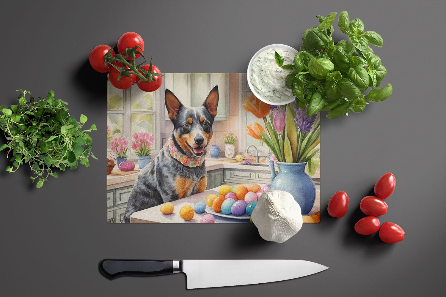 Glass Cutting Board featuring breed specific Australian Cattle Dog artwork. Celebrate Easter with this Easter Cutting Board. Introduce your kitchen to the vibrant, large Decorative Glass Cutting Board from Caroline's Treasures. Crafted from resilient tempered glass, this board is not only a utilitarian necessity but also a colorful art piece. With its generous dimensions of 15 inches in height and 12 inches in length, it offers ample space for all your cutting needs. Every piece showcases captivating artwork from distinguished artists, bringing an aesthetic edge to your kitchen. Beyond its attractive design, this cutting board ensures your countertop stays pristine and unscathed, owing to its heat-resistant properties. Engineered with user convenience in mind, it features non-skid feet for stability, and rounded corners for additional safety. Its robust construction renders it virtually unbreakable, guaranteeing longevity. The board comes with protective feet bumpers, maintaining its position during use. This product is recommended to be hand washed only. Proudly printed and assembled in the United States, this cutting board exemplifies superior craftsmanship. With Caroline's Treasures' Decorative Glass Cutting Board, you're investing in a blend of functionality and artistic flair.