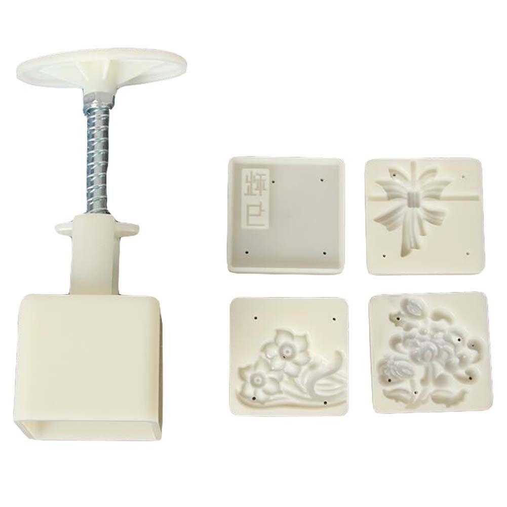 4 Stamps Autumn Square Shape Moon Cake Mold Flower Cake Mold Pie Mold Baking Tools 50G
