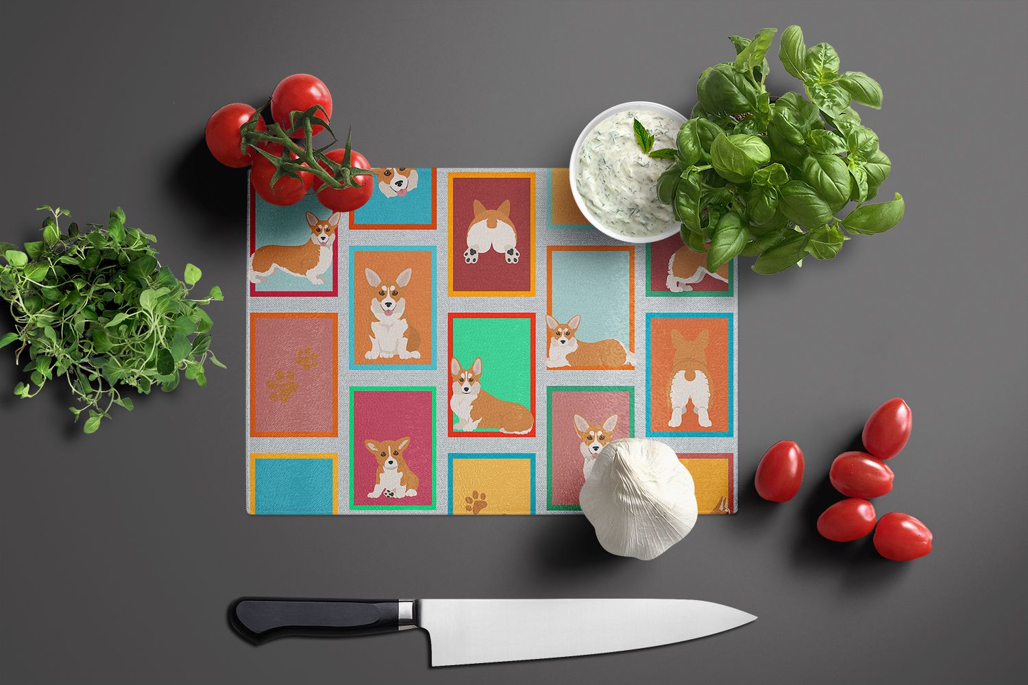 Home > NEW Lots of Red and White Pembroke Corgi Glass Cutting Board Decorative Tempered Glass Kitchen Cutting and Serving Board Large Size Chopping Board