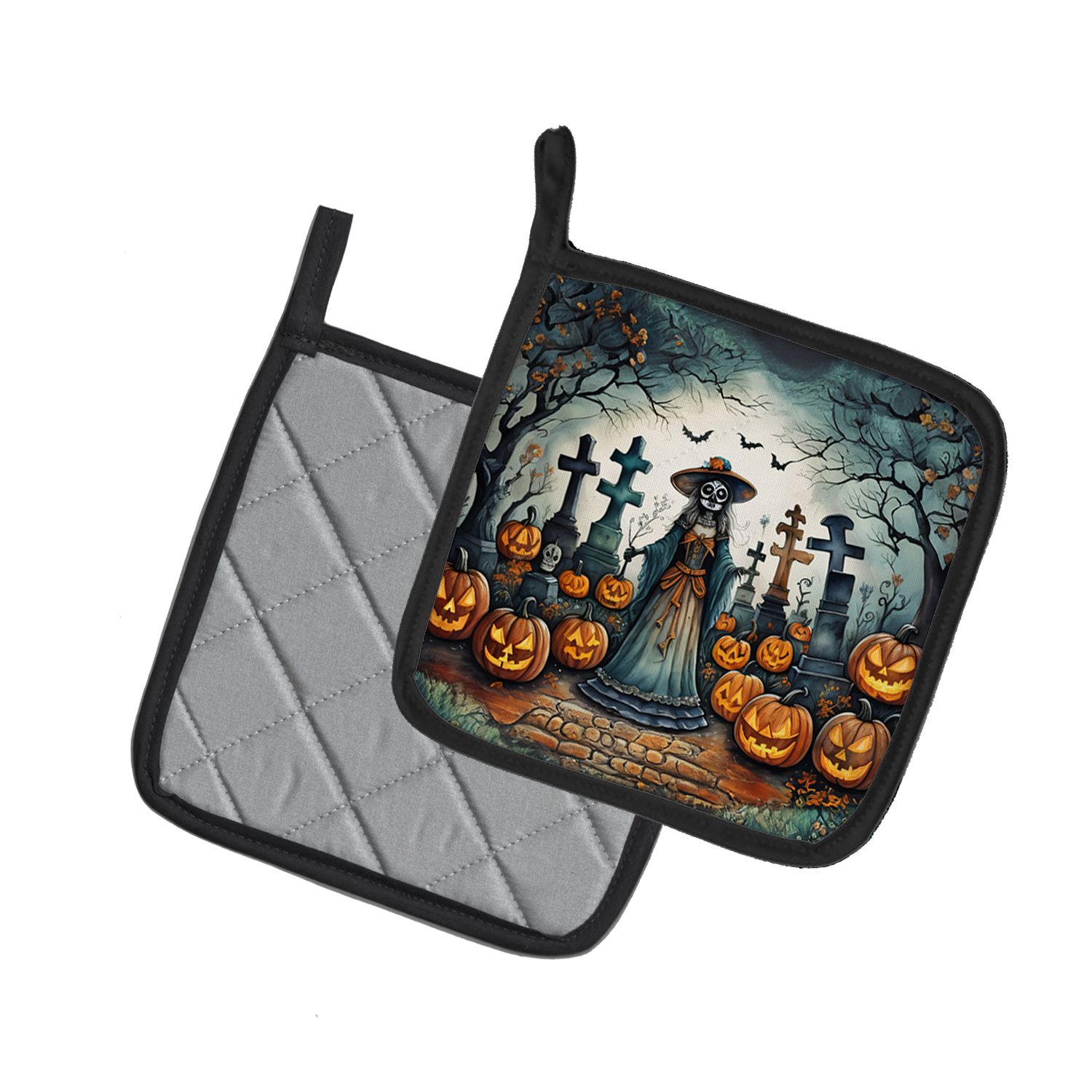 Home > La Catrina Skeleton Spooky Halloween Pair of Pot Holders Kitchen Heat Resistant Pot Holders Sets Oven Hot Pads for Cooking Baking BBQ, 7 1/2 x 7 1/2