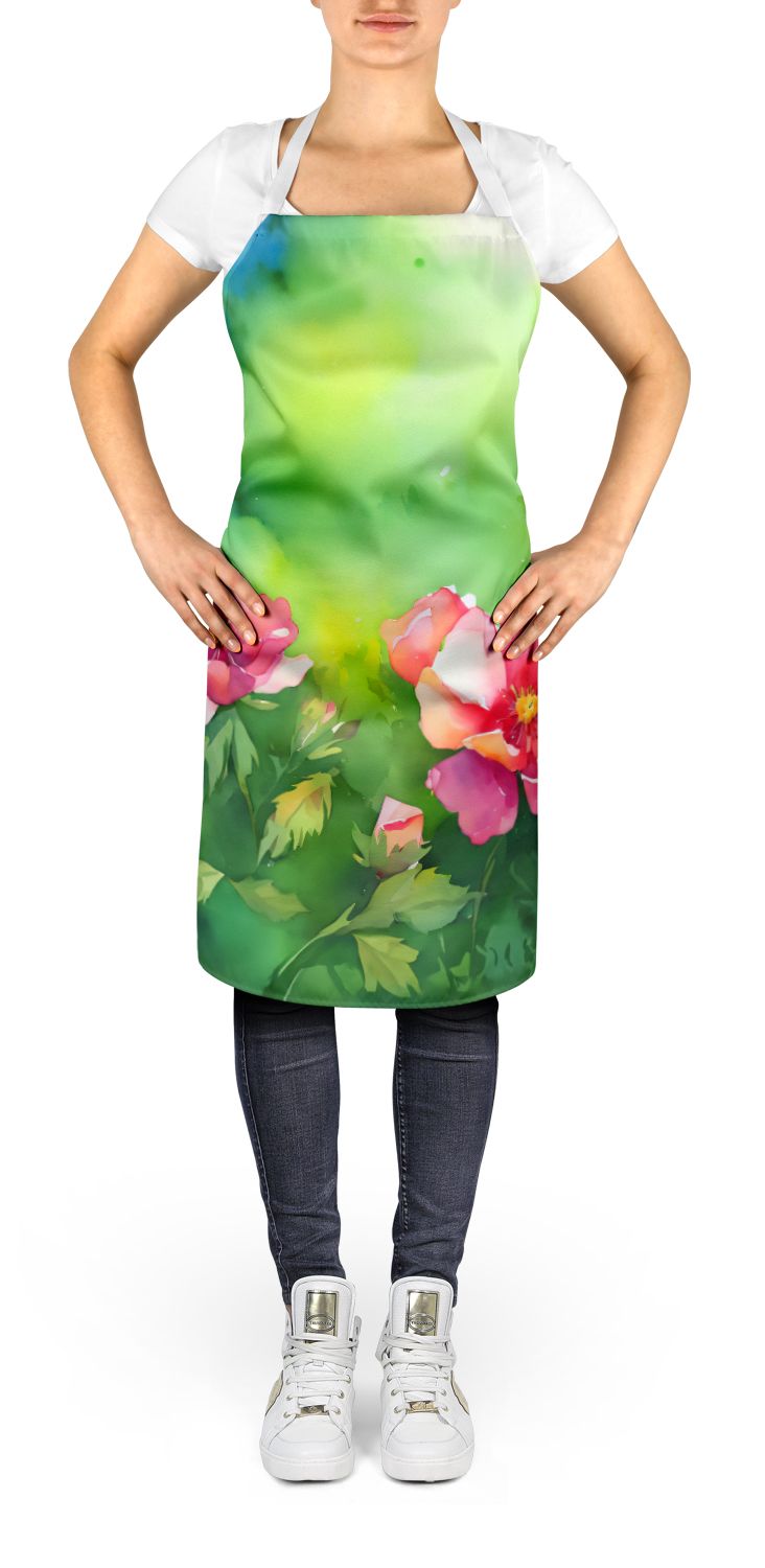 Iowa Wild Prairie Roses in Watercolor Apron Cooking Kitchen Server Baking Crafts Gardening for Adult Women Men, Unisex, Large, Multicolor