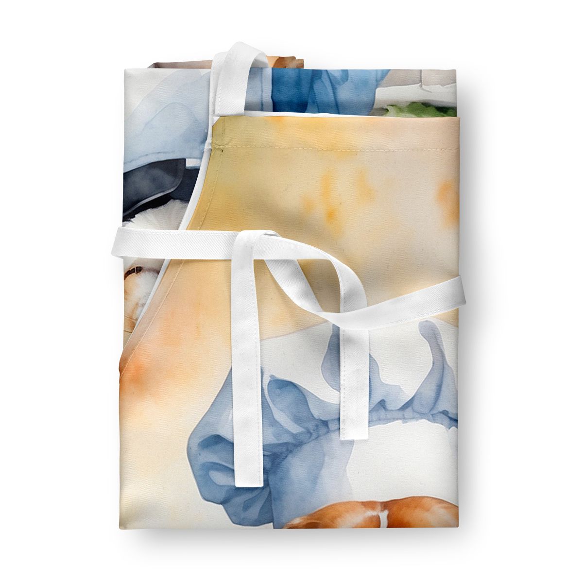 Apron featuring breed specific Beagle artwork. Elevate your cooking, baking, and grilling experiences with our versatile Kitchen or BBQ Apron. This Bib Style apron isn't just limited to culinary activities - it also serves as an excellent baking apron, artist apron, server apron, gardening apron, or even a dog grooming apron. The apron showcases vibrant full-color artwork contributed by one of our talented artists, bringing a dash of style to your daily tasks. With dimensions of approximately 27"W x 30"H, it provides ample coverage to protect your clothing from spills and splashes. Our apron is meticulously crafted from 100% Ultra Spun Polyester, known for its durability and lightweight nature. The apron comes with white tie straps, ensuring a comfortable and adjustable fit for all. It's a perfect choice for kitchen apron enthusiasts, whether you are a woman or a man. Designed for easy maintenance, this apron is fully machine washable. The quick-drying polyester material actively reduces staining, keeping your apron looking fresh and new for longer. Our beautifully designed apron isn't just a functional kitchen accessory - it's a fashion statement in the culinary world!