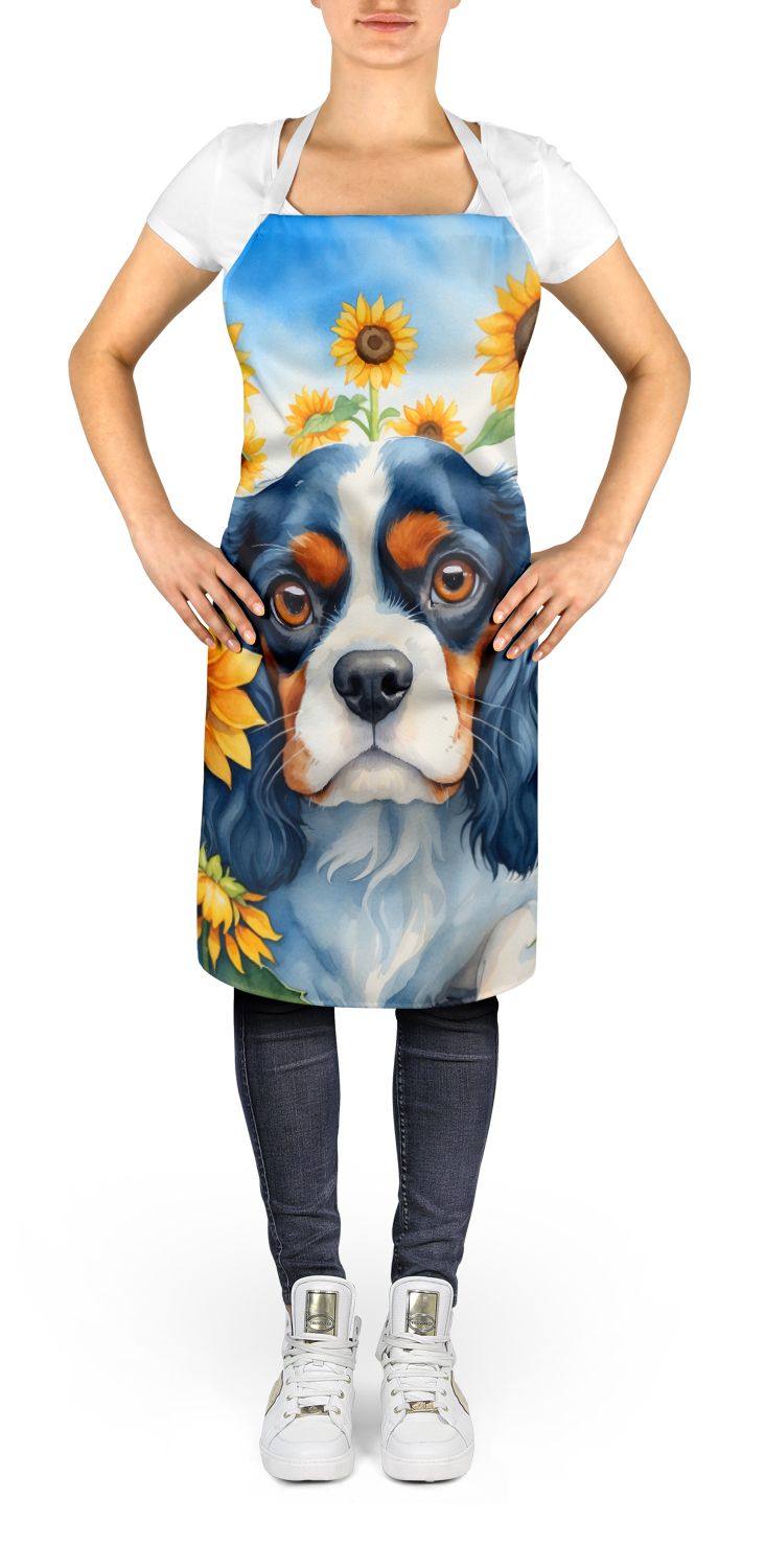 Cavalier Spaniel in Sunflowers Apron Cooking Kitchen Server Baking Crafts Gardening for Adult Women Men, Unisex, Large, Multicolor