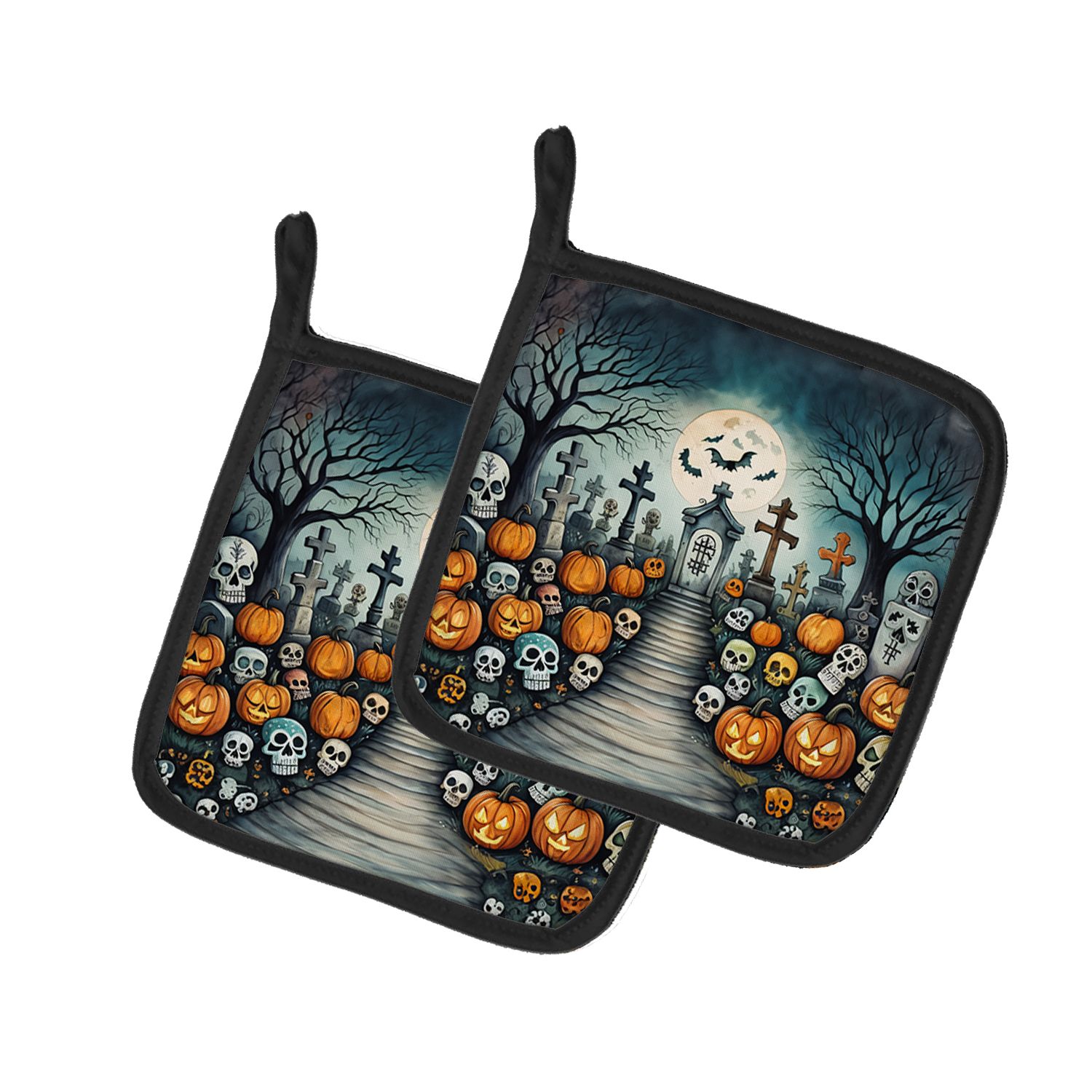 Home > Calaveras Sugar Skulls Spooky Halloween Pair of Pot Holders Kitchen Heat Resistant Pot Holders Sets Oven Hot Pads for Cooking Baking BBQ