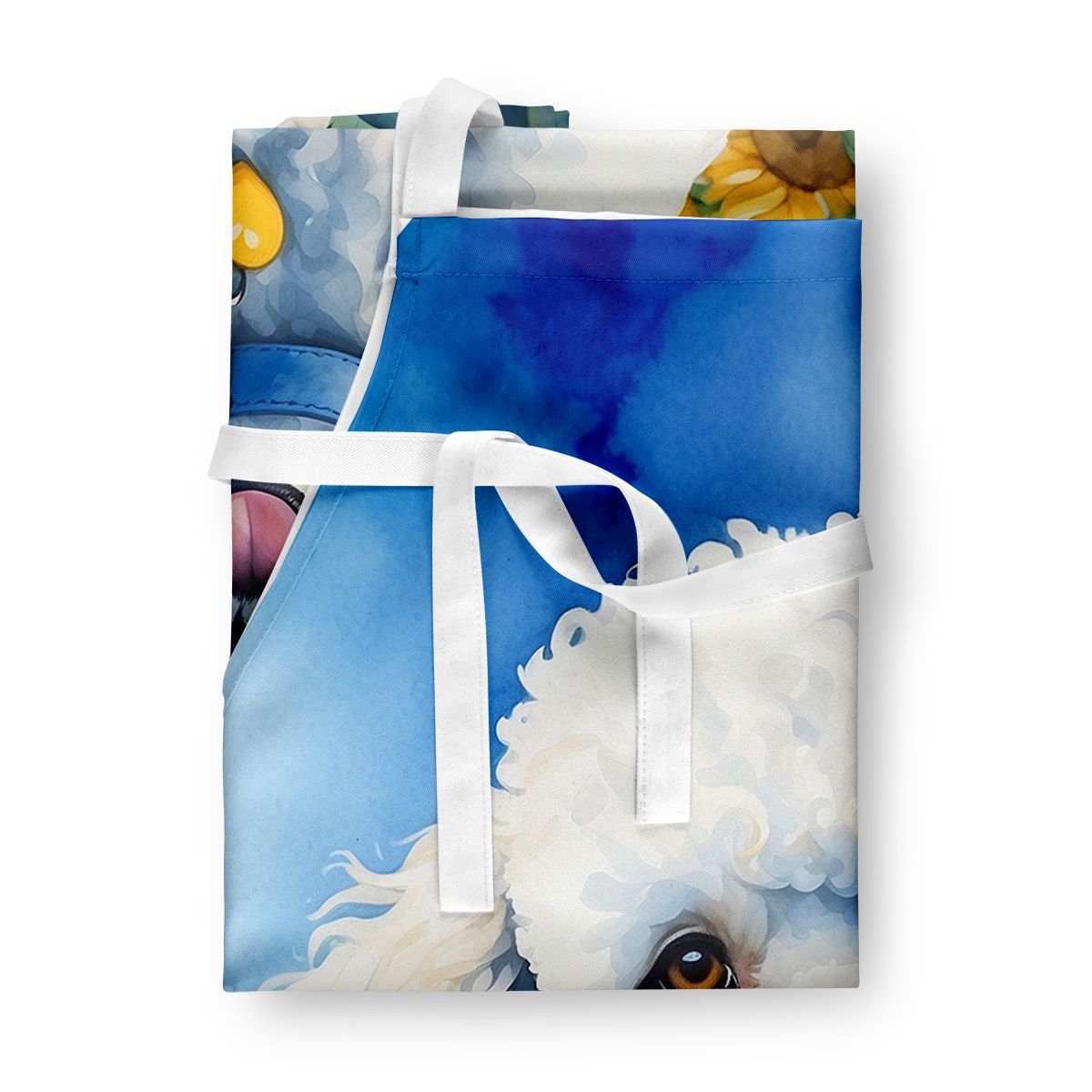 White Poodle in Sunflowers Apron Cooking Kitchen Server Baking Crafts Gardening for Adult Women Men, Unisex, Large, Multicolor