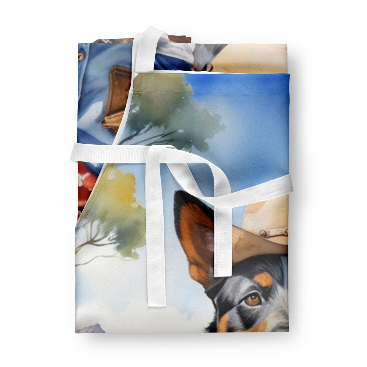 Apron featuring breed specific Australian Cattle Dog artwork. Elevate your cooking, baking, and grilling experiences with our versatile Kitchen or BBQ Apron. This Bib Style apron isn't just limited to culinary activities - it also serves as an excellent baking apron, artist apron, server apron, gardening apron, or even a dog grooming apron. The apron showcases vibrant full-color artwork contributed by one of our talented artists, bringing a dash of style to your daily tasks. With dimensions of approximately 27"W x 30"H, it provides ample coverage to protect your clothing from spills and splashes. Our apron is meticulously crafted from 100% Ultra Spun Polyester, known for its durability and lightweight nature. The apron comes with white tie straps, ensuring a comfortable and adjustable fit for all. It's a perfect choice for kitchen apron enthusiasts, whether you are a woman or a man. Designed for easy maintenance, this apron is fully machine washable. The quick-drying polyester material actively reduces staining, keeping your apron looking fresh and new for longer. Our beautifully designed apron isn't just a functional kitchen accessory - it's a fashion statement in the culinary world!