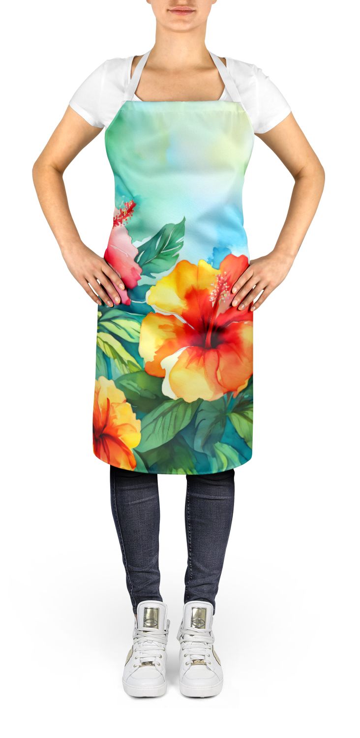 Hawaii Hawaiian Hibiscus in Watercolor Apron Cooking Kitchen Server Baking Crafts Gardening for Adult Women Men, Unisex, Large, Multicolor