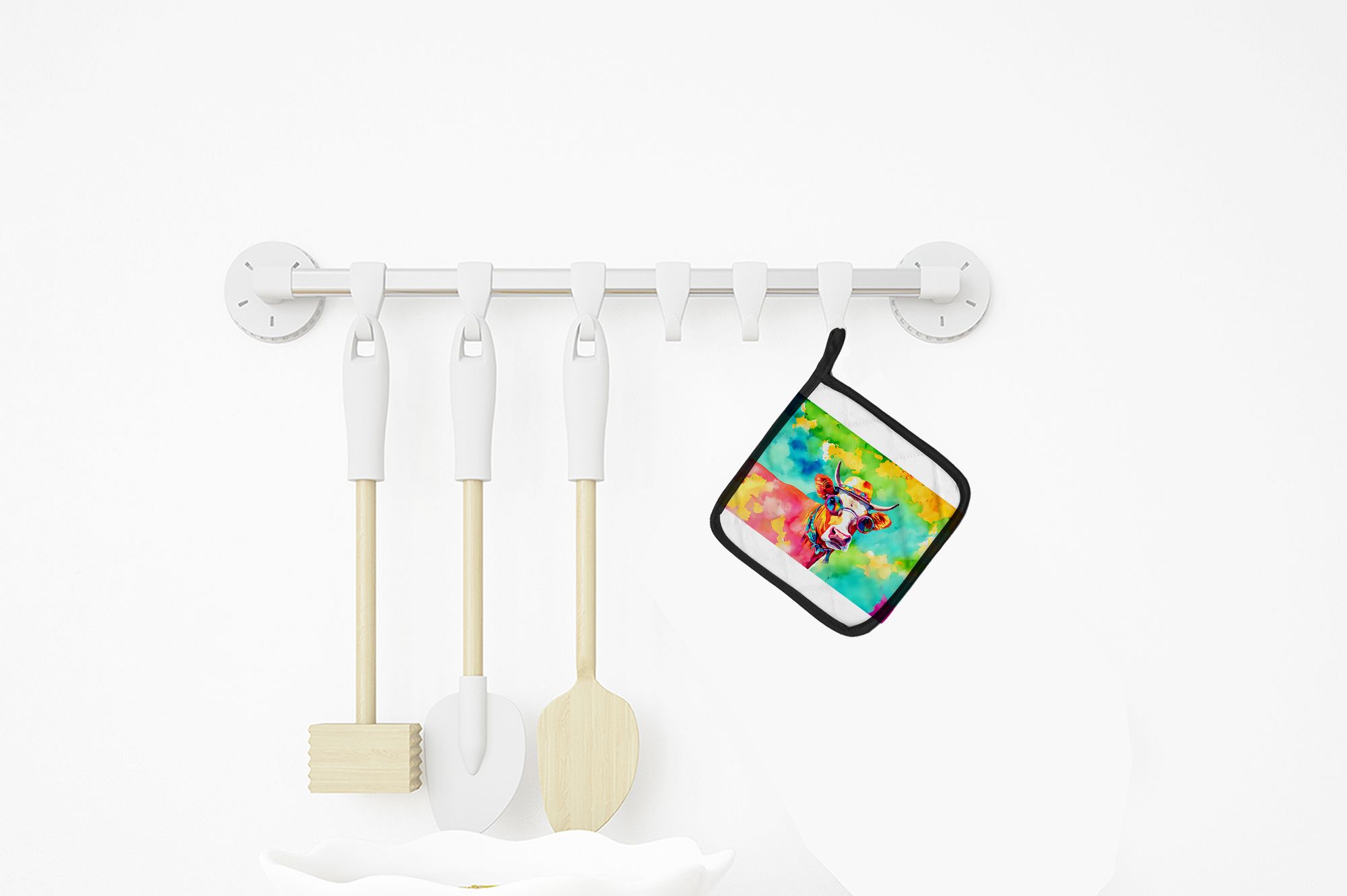 NEW Hippie Animal Malvi Cow Pair of Pot Holders Kitchen Heat Resistant Pot Holders Sets Oven Hot Pads for Cooking Baking BBQ, 7 1/2 x 7 1/2