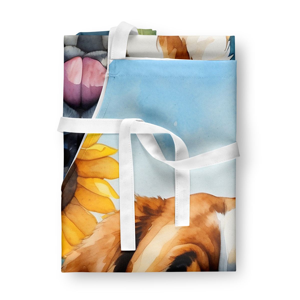 Saint Bernard in Sunflowers Apron Cooking Kitchen Server Baking Crafts Gardening for Adult Women Men, Unisex, Large, Multicolor