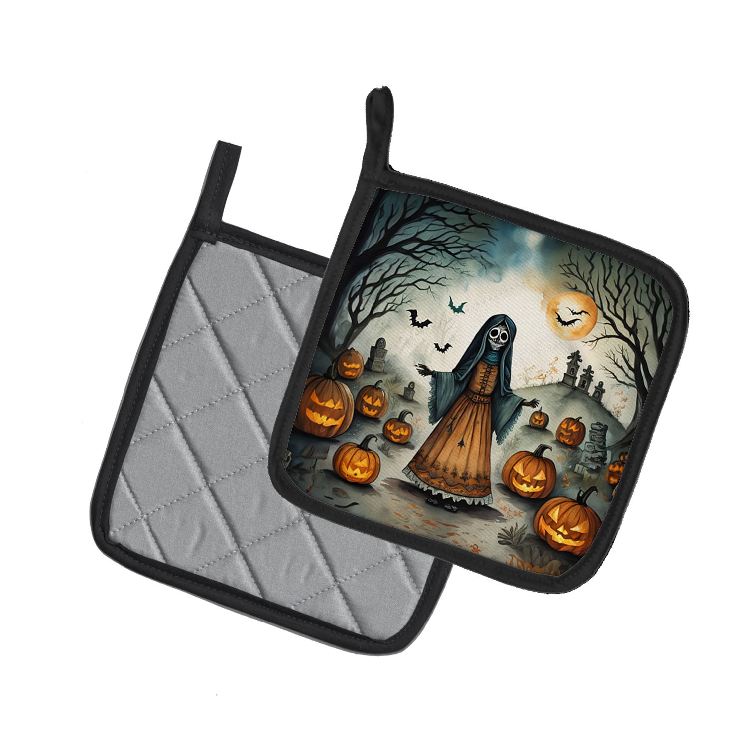 Home > La Llorona Skeleton Spooky Halloween Pair of Pot Holders Kitchen Heat Resistant Pot Holders Sets Oven Hot Pads for Cooking Baking BBQ, 7 1/2 x 7 1/2