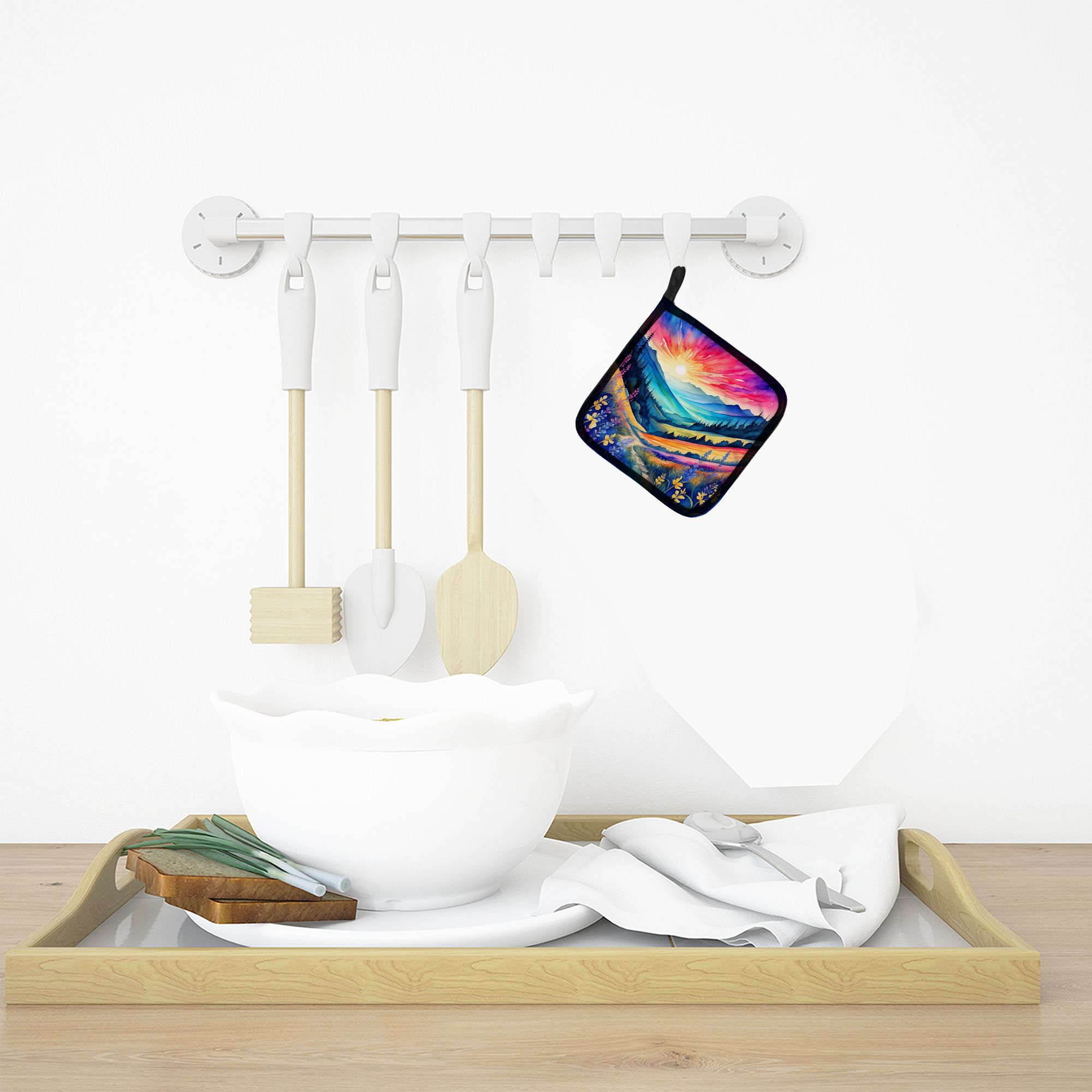Colorful Annual Larkspur Pair of Pot Holders Kitchen Heat Resistant Pot Holders Sets Oven Hot Pads for Cooking Baking BBQ, 7 1/2 x 7 1/2