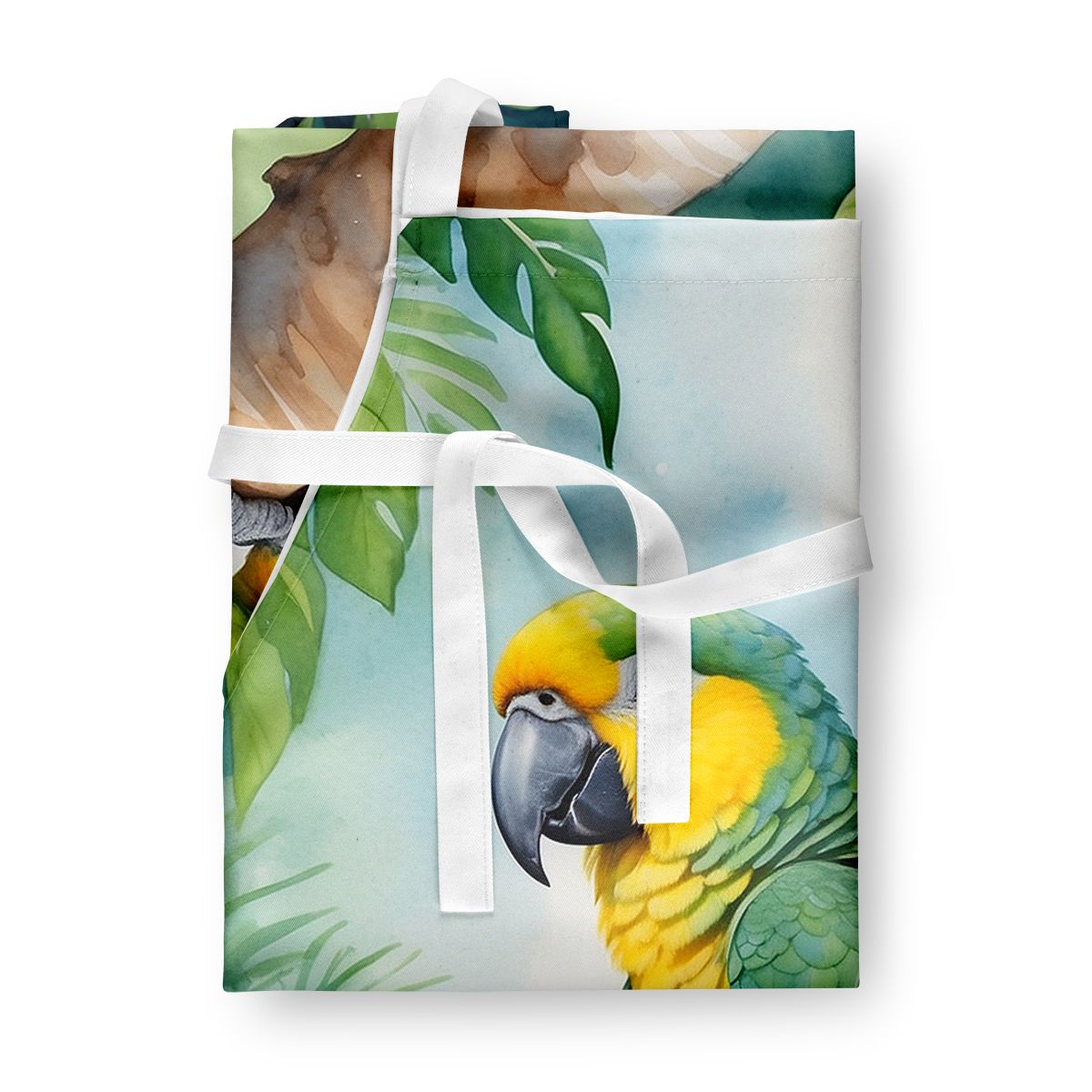 Apron featuring breed specific Yellownaped Amazon Parrot artwork. Elevate your cooking, baking, and grilling experiences with our versatile Kitchen or BBQ Apron. This Bib Style apron isn't just limited to culinary activities - it also serves as an excellent baking apron, artist apron, server apron, gardening apron, or even a dog grooming apron. The apron showcases vibrant full-color artwork contributed by one of our talented artists, bringing a dash of style to your daily tasks. With dimensions of approximately 27"W x 30"H, it provides ample coverage to protect your clothing from spills and splashes. Our apron is meticulously crafted from 100% Ultra Spun Polyester, known for its durability and lightweight nature. The apron comes with white tie straps, ensuring a comfortable and adjustable fit for all. It's a perfect choice for kitchen apron enthusiasts, whether you are a woman or a man. Designed for easy maintenance, this apron is fully machine washable. The quick-drying polyester material actively reduces staining, keeping your apron looking fresh and new for longer. Our beautifully designed apron isn't just a functional kitchen accessory - it's a fashion statement in the culinary world!