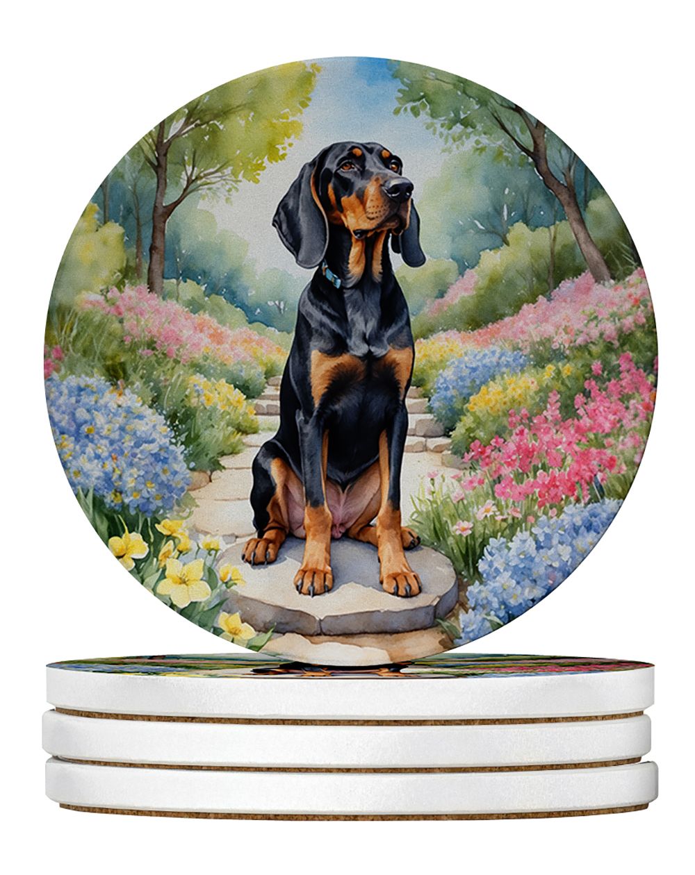 Home > Black and Tan Coonhound Spring Path Large Sandstone Coasters Pack of 4 Absorbent Round Coasters Decor Gifts for Men or Women, 4 in, Multicolor