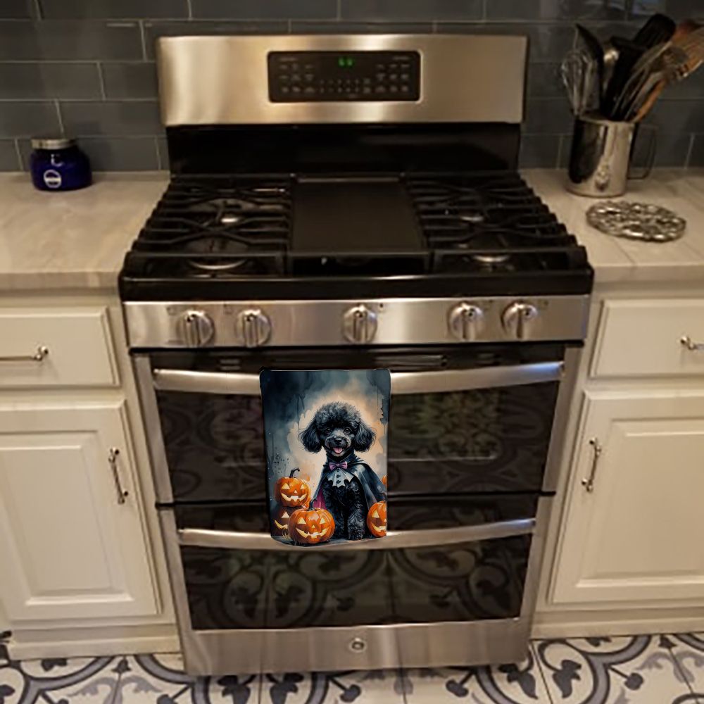 Kitchen Towel featuring breed specific Poodle artwork. Celebrate Halloween with this Halloween Kitchen Towel. Experience the perfect blend of aesthetic appeal and functional excellence with our Plush Velour Kitchen Towels. These are not your ordinary decorative kitchen towels that gather dust. Instead, they are designed to be as practical as they are stylish. The front layer of our towel is constructed from a minky plush polyester, known for its durability and color retention. Unlike conventional kitchen towels, the artwork on our towels is dyed directly into the fabric, ensuring vibrant colors that last. Polish your glassware to a brilliant sparkle using the plush front side of the towel. Flip to the back, crafted from 100% cotton terry loop, to exploit its exceptional absorbency for drying dishes or wiping down counters. Our kitchen towels redefine the concept of functional art, offering lasting quality that maintains the towel's shape over time. Measuring 15 inches by 25 inches and weighing 2.3 lbs per dozen, these towels deliver an overwhelming sensory experience with their soft, plush, and smooth texture. The edges are meticulously finished with binding, enhancing their durability and visual appeal. For your convenience, these towels are machine washable and can be dried on low heat. After the first wash, the top fabric becomes even softer and fluffier, eliminating the need for ironing. Treat your kitchen to the luxury and functionality it deserves with our plush velour kitchen towels.