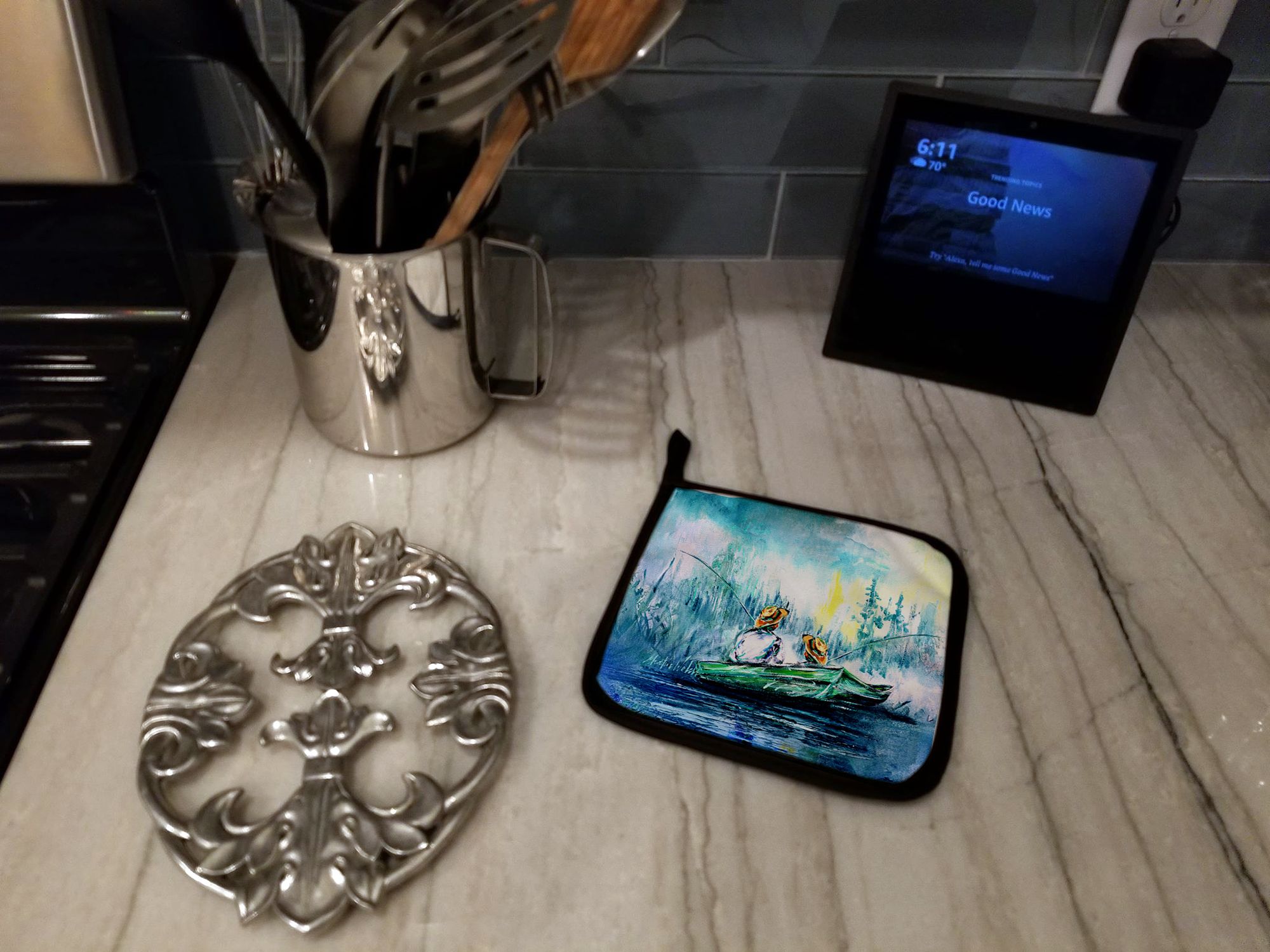 Home > Fishing On The Bayou Pair of Pot Holders Kitchen Heat Resistant Pot Holders Sets Oven Hot Pads for Cooking Baking BBQ, 7 1/2 x 7 1/2