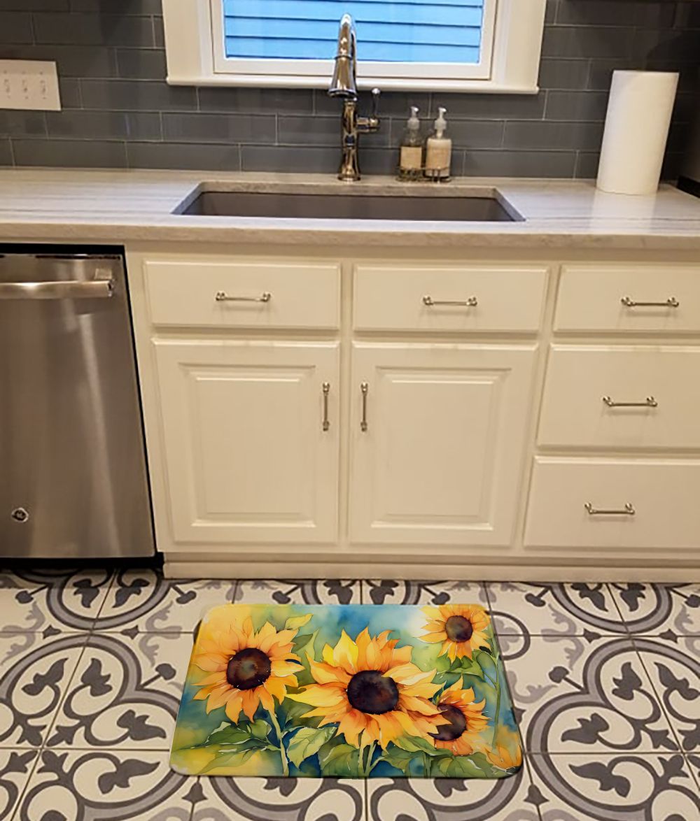 Memory Foam Kitchen Mat featuring breed specific Sunflowers artwork. Transform your floor into a work of art with Caroline's Treasures' Memory Foam Mat. This mat offers not only a stunning visual appeal but also a luxurious, plush feel that's incredibly comfortable to the touch. It's a versatile, machine-washable mat designed for both bath and kitchen use, ensuring you experience the best in comfort and convenience. Care Instructions: Maintaining this memory foam mat is a breeze. Simply follow the care instructions on the product tag. It's recommended to wash in cold water and dry on a low-temperature setting in the dryer. This ensures the mat retains its quality and longevity, allowing you to enjoy its beauty and comfort for a long time. Caroline's Treasures' Memory Foam Mat Machine Washable is the perfect blend of artistry, comfort, and practicality, making it a standout addition to any space. Upgrade your home decor with this versatile and stylish mat today.