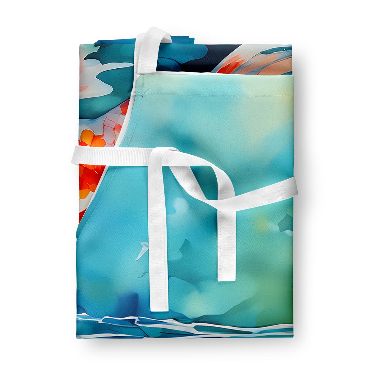Apron featuring breed specific Koi Fish artwork. Elevate your cooking, baking, and grilling experiences with our versatile Kitchen or BBQ Apron. This Bib Style apron isn't just limited to culinary activities - it also serves as an excellent baking apron, artist apron, server apron, gardening apron, or even a dog grooming apron. The apron showcases vibrant full-color artwork contributed by one of our talented artists, bringing a dash of style to your daily tasks. With dimensions of approximately 27"W x 30"H, it provides ample coverage to protect your clothing from spills and splashes. Our apron is meticulously crafted from 100% Ultra Spun Polyester, known for its durability and lightweight nature. The apron comes with white tie straps, ensuring a comfortable and adjustable fit for all. It's a perfect choice for kitchen apron enthusiasts, whether you are a woman or a man. Designed for easy maintenance, this apron is fully machine washable. The quick-drying polyester material actively reduces staining, keeping your apron looking fresh and new for longer. Our beautifully designed apron isn't just a functional kitchen accessory - it's a fashion statement in the culinary world!