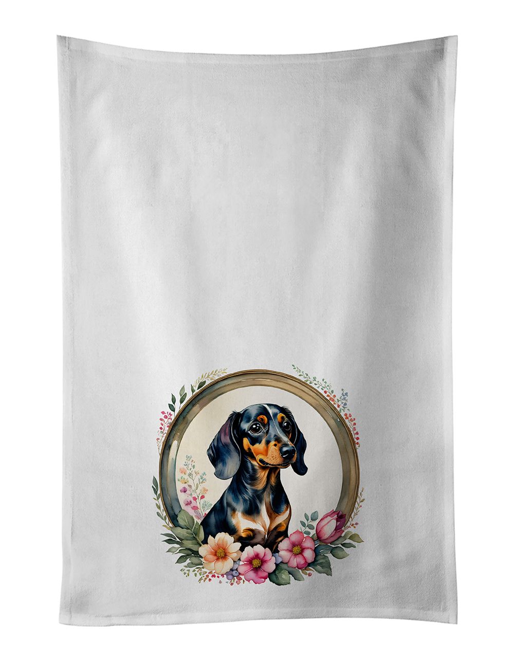 Home > Dachshund and Flowers Kitchen Towel Set of 2 White Dish Towels Decorative Bathroom Hand towel for Hand, Face, Hair, Yoga, Tea, Dishcloth, 19 X 28"