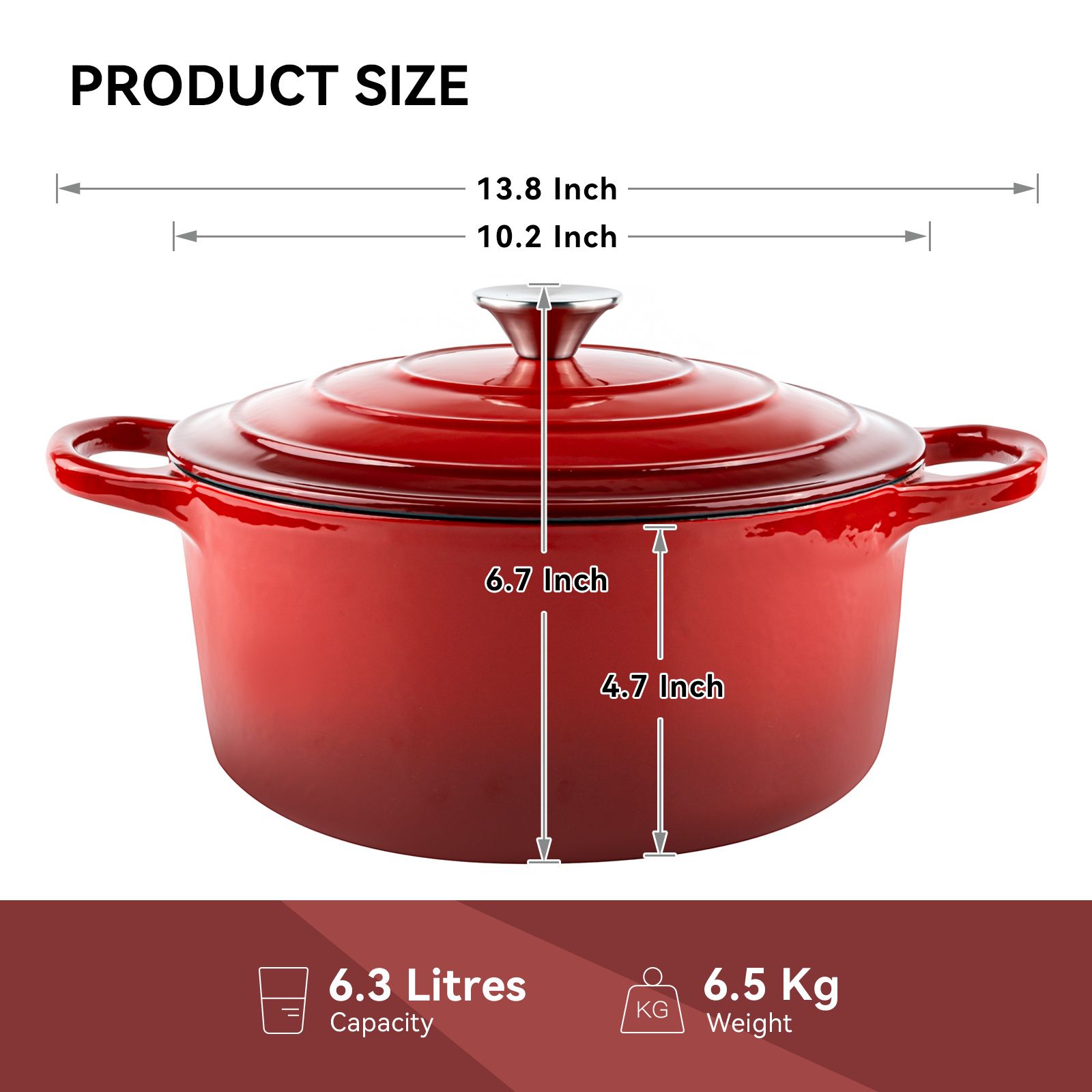 ��LARGE 6 QT CAPACITY:Our cast iron dutch oven can be used for multiple cooking methods such a cooking, baking, stewing etc.With this Large capacity enameled cast iron, can meet all the needs of family gatherings.The highest temperature tolerance is as high as 500°F.